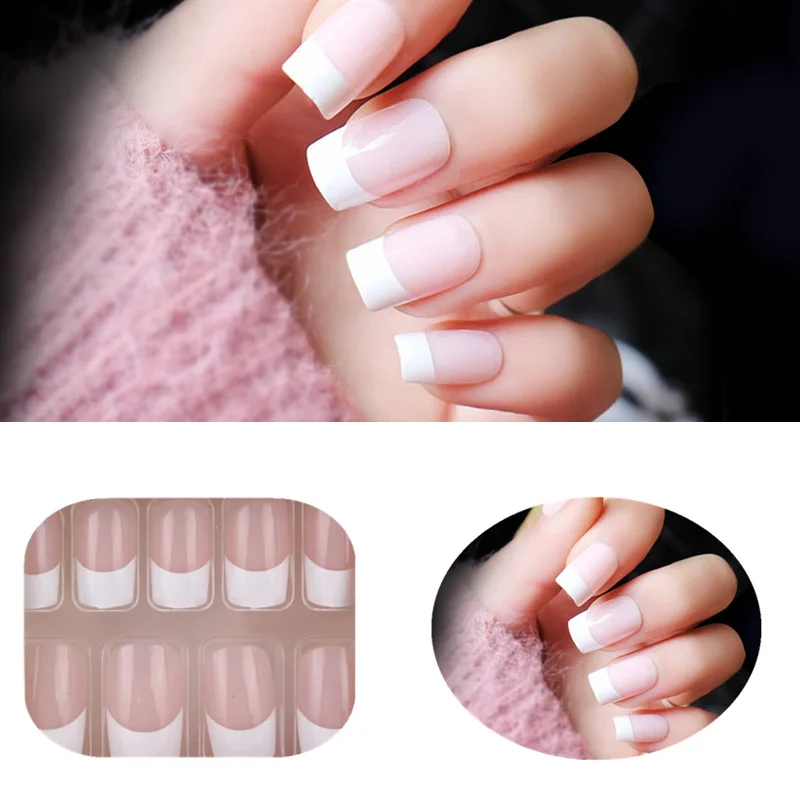 24pcs Natural Pink French Short False Nails Acrylic Full