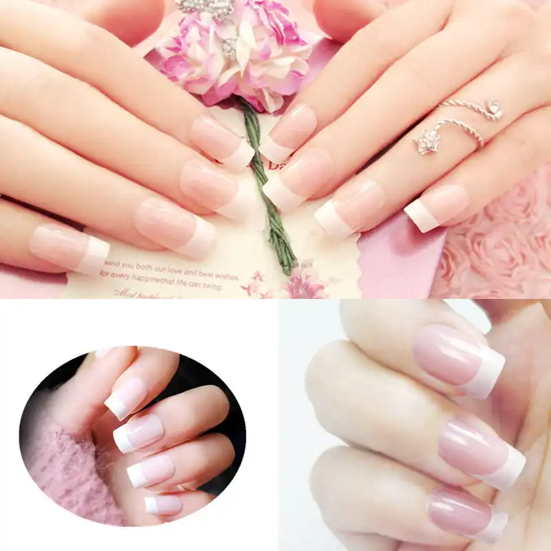 1lot 10 Kits Long Full French Nail Tips Natural Pink Acrylic Nails