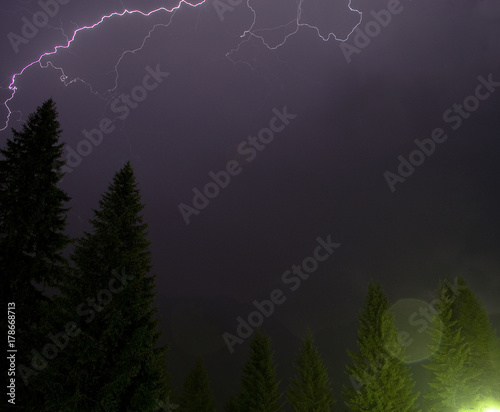Night Landscape Silhouette Of Pine Forest In Which Profile