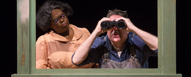 Jeff Award Winner Kathy Voytko steals the show as “Francesca”, bringing the audience along for the ride with her soaring vocals. The chemistry is palpable and intoxicating, with Jeff Award Winner Nathaniel Stampley as “Robert”. Wydetta Carter is another absolute stand out as nosey neighbor, “Marge”. We love her powerful solo that cleverly doubles as a radio backdrop for illicit romance.