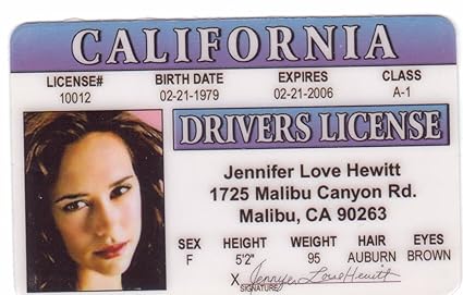 Amazon Com Jennifer Love Hewitt Novelty Drivers License Fake I D