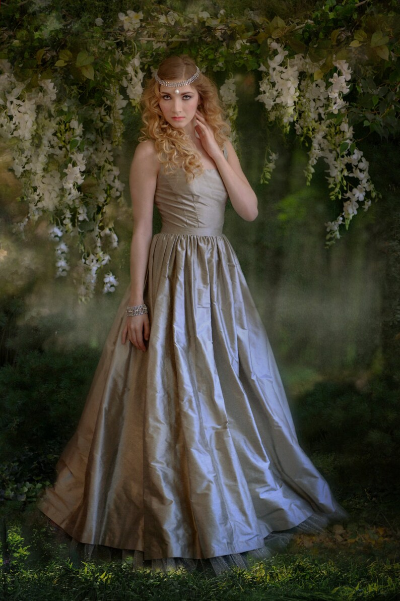 Platinum Silk Shantung Simple Ball Gown Wedding Dress