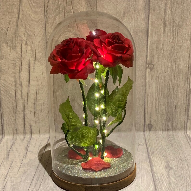 Red Roses Triple Rose Lights Bell Jar Enchanted Roses Rose Dome Mother S Day Real Touch Roses Forever Roses Glass Dome