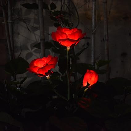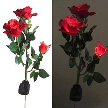 Lenofocus Solar Powered 3 Led Red Rose Flower Lights Solar