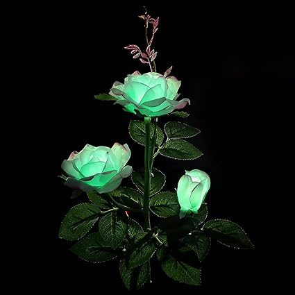 Xlux Outdoor Solar Powered Rose Lights Flower Stake For Garden Patio Yard Christmas Pathway Decoration Mint Green With Red Edge