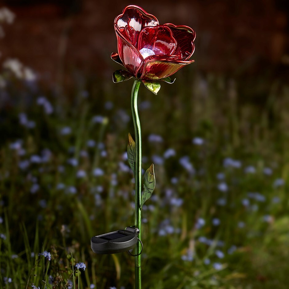 Fu Fu Solar Powered Red Rose Flower Led Warm Light Rose
