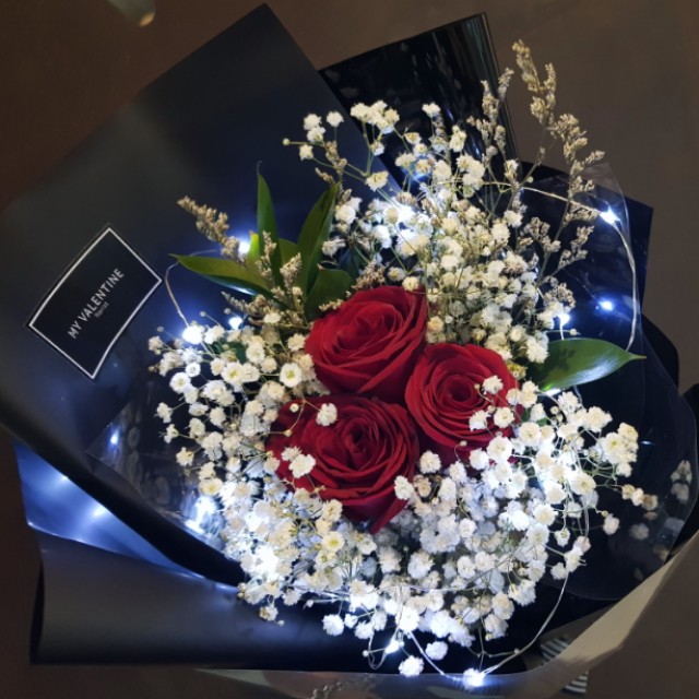 Red Roses With Fairy Lights Valentines Day Flowers 2018