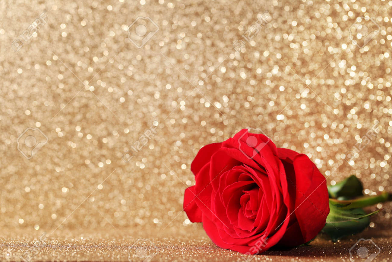 Red Rose On Golden Lights Background